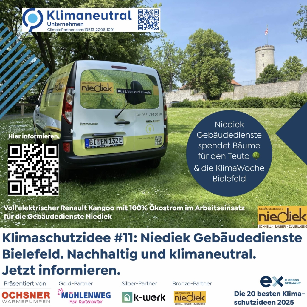 Klimaschutzidee #11: Niediek Gebäudedienste Bielefeld. Nachhaltig und klimaneutral. Jetzt informieren.