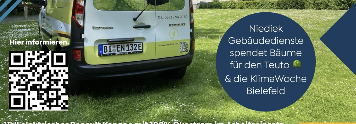 Niediek Gebäudedienste ist ein klimaneutrales Unternehmen und engagiert sich zudem für die regionale Wiederaufforstung und hat für jede/n Verwaltungsangestellte/n einen Baum 🌳 für den Teutoburger Wald und die KlimaWoche Bielefeld gespendet.