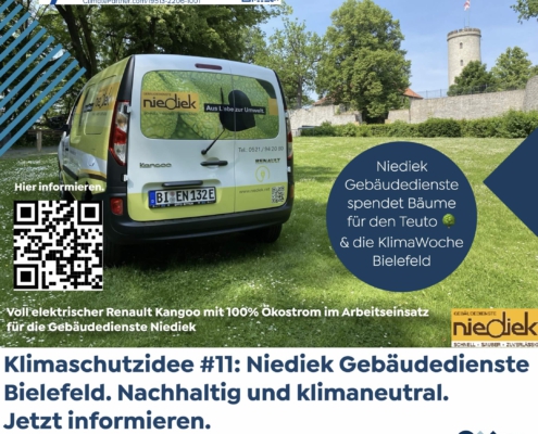 Klimaschutzidee #11: Niediek Gebäudedienste Bielefeld. Nachhaltig und klimaneutral. Jetzt informieren.