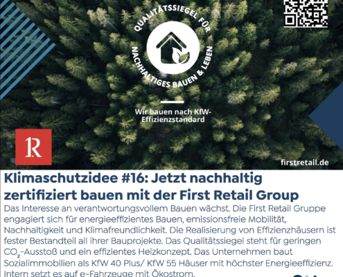 Klimaschutzidee #16: Jetzt nachhaltig zertifiziert bauen mit der First Retail Group