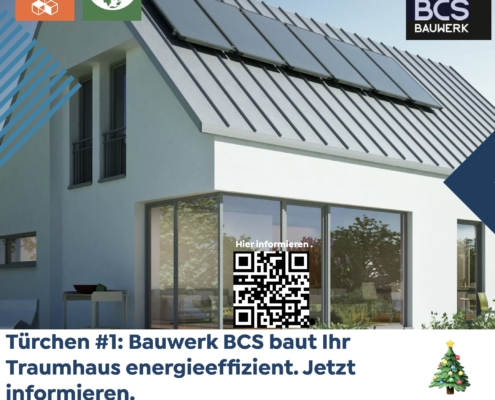 Türchen #1: Bauwerk BCS baut Ihr Traumhaus energieeffizient. Jetzt informieren.