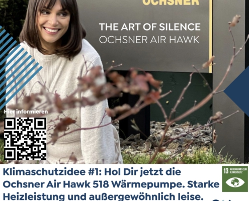 Klimaschutzidee #1: Hol Dir jetzt die Ochsner Air Hawk 518 Wärmepumpe. Starke Heizleistung und außergewöhnlich leise.
