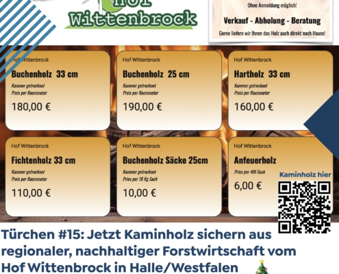 Türchen #15: Jetzt Kaminholz sichern aus regionaler, nachhaltiger Forstwirtschaft vom Hof Wittenbrock in Halle/Westfalen