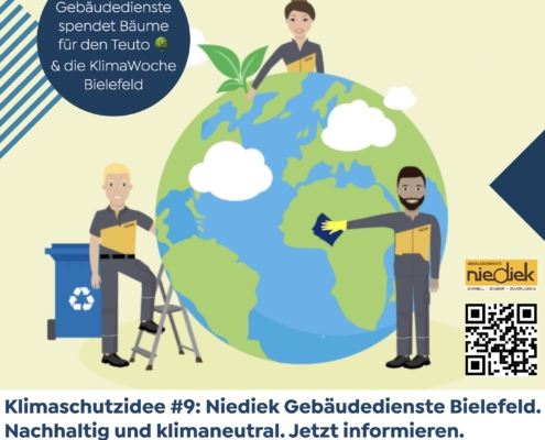 Klimaschutzidee #9: Niediek Gebäudedienste Bielefeld. Nachhaltig und klimaneutral. Jetzt informieren.